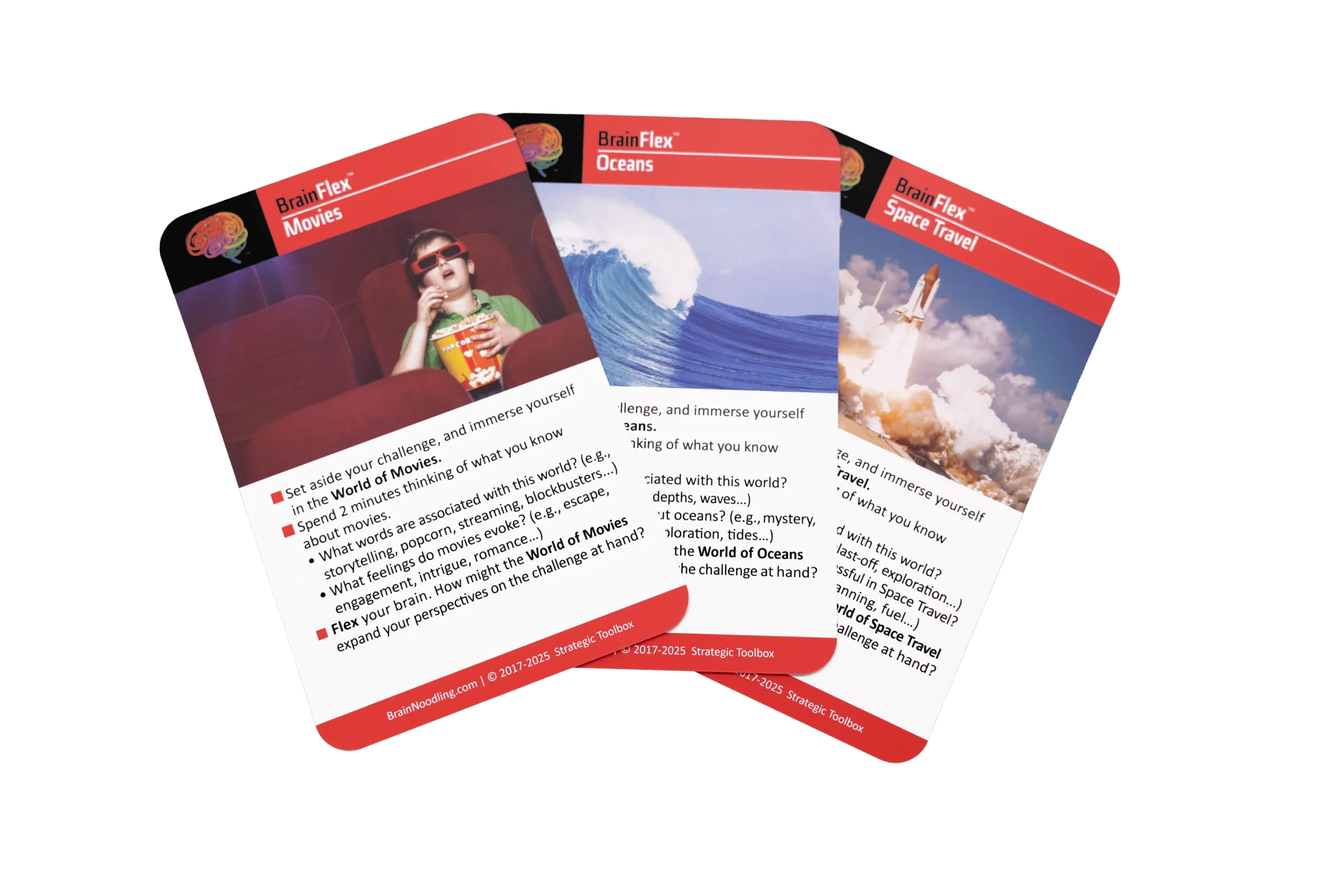 BrainFlex™ helps you borrow perspectives from unexpected places—industries, cultures, and disciplines you’ve never explored. It’s like stepping into a new world where anything is possible.